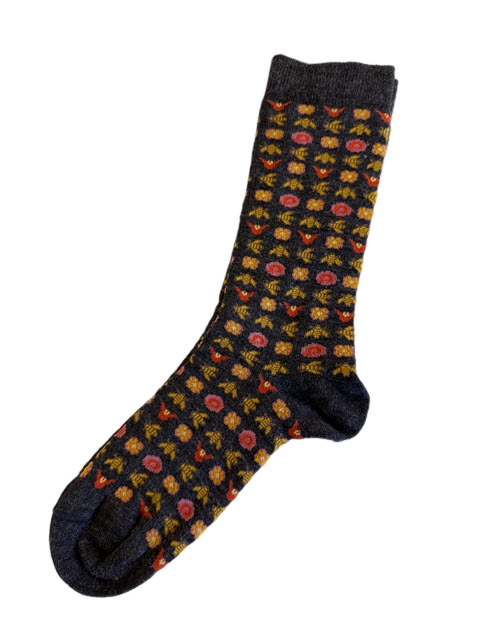 These are still soft, warm, and very comfortable yet lighter weight and not as thick in your shoe or boot. The Bee Happy is a fun and light hearted design with Bee’s and flowers. 66% Baby Alpaca, 16% Bamboo, 16% Nylon and 2% Spandex.