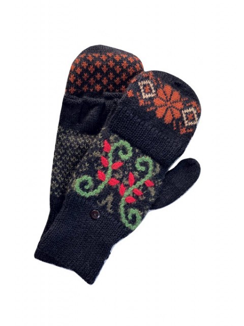 Nuestra Alpaca Glittens – Fleeced lined – Our classic alpaca glittens (glove/mitten) have lots of details including hand embroidery, a flap that when used becomes a mitten. The flap has a loop on the end and there is a button on the wrist so that when you are not using the flap you can button it and the flap is out of the way. This beautiful glitten coordinates with an ear flap hat in this section of the website. Jacquard knit in 50% Alpaca and 50% Acrylic in a floral design. Hand wash cold water, mild soap, lay flat to dry. Fair Trade from Peru.